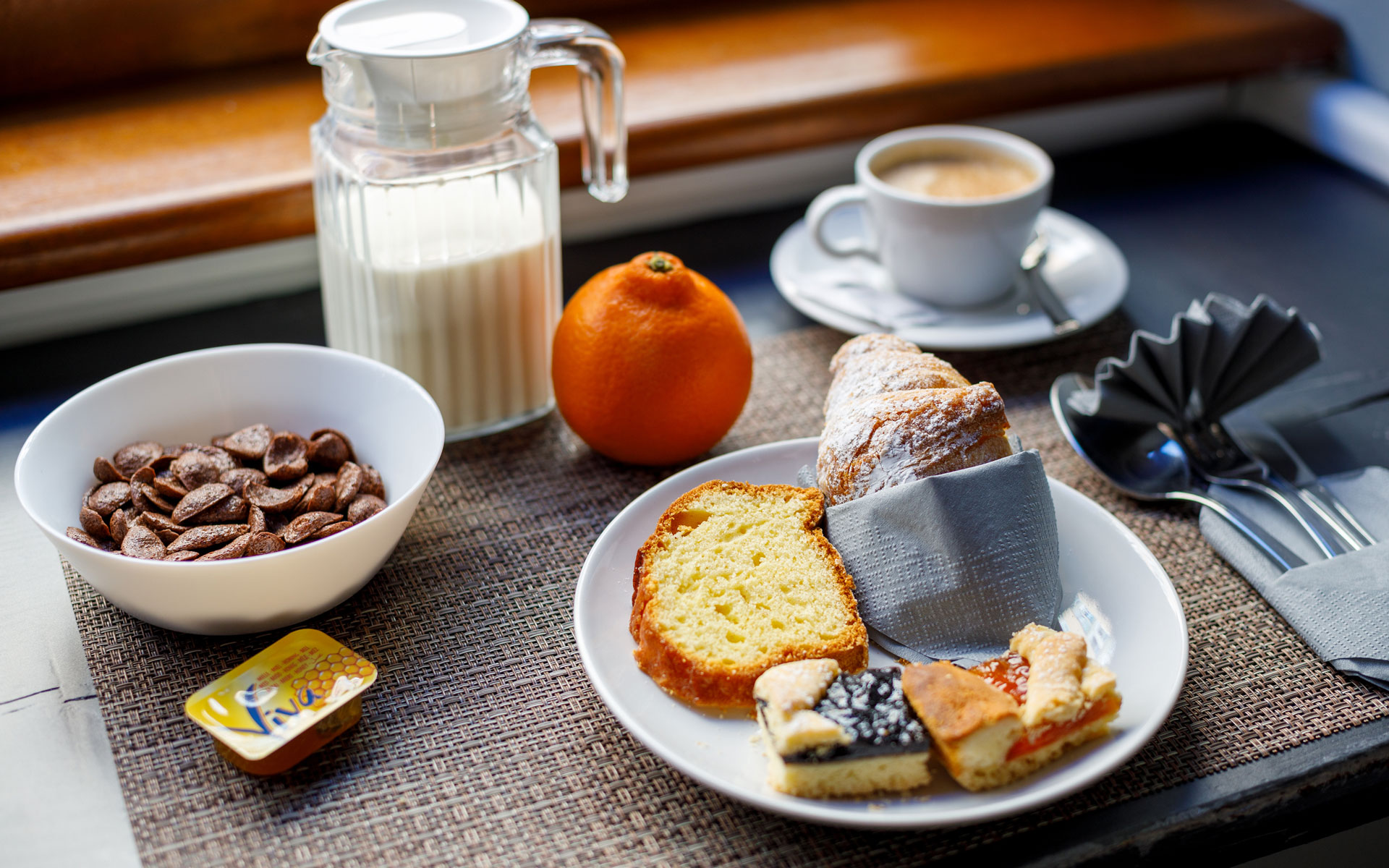 Grazie a questa collaborazione, ogni mattina gli ospiti possono gustare una colazione completa scegliendo tra diverse proposte. La formula comprende una bevanda calda a scelta tra espresso, cappuccino o caffè filtro, accompagnata da un prodotto dolce o salato, come un cornetto, una fetta di torta o un croissant farcito con prosciutto cotto e formaggio. A completare il tutto, una bevanda fredda a scelta tra spremuta d’arancia, succo di frutta o acqua.